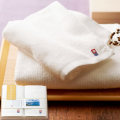 清らかな白なみのように美しい、純白の今治タオル。凹凸感のある独特な風合いが心地よいあぜ織りに仕立てました。高級感のある木箱に丁寧に詰め合わせ大切な方へお贈りいたします。
