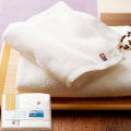 清らかな白なみのように美しい、純白の今治タオル。凹凸感のある独特な風合いが心地よいあぜ織りに仕立てました。高級感のある木箱に丁寧に詰め合わせ大切な方へお贈りいたします。