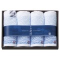 寄せては返す波のように、永遠への願いを込めて。 透き通るような青のグラデーションと白のコントラスト、打ち寄せる白波のように織られた波の模様が印象的。綿の柔らかさを生かしつつ、軽くさっぱりとした肌触りに織り上げられています。