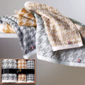 滑らかなテクスチャ―と、心躍るモダンデザイン。 英国生まれの世界中で好まれるお洒落な千鳥格子をモチーフに、代表色のチャコールグレー・キャメルで今治タオルに仕立ててみました。