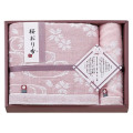 桜柄を織り込んだ「桜おり布」今治製タオル。柔らかな手触りと高い吸水性を持ち、日常に上品で華やかな彩を添えます。