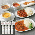 【内容】コーンのクリームスープ160g×4、ミネストロンスープ160g、コンソメ160g、ビーフカレー190g、ダルカレー180g×各2