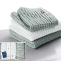 美しさと使い心地の良さを兼ね備えた、立体的な織柄の今治製タオルセット。「ワッフル織」と呼ばれるマス型のこの組織は、さらりとした肌触りと優れた吸水性が特長です。使っていくうちにボリュームが増して、ふんわりしていた感触が「ふっくら」に変わります。