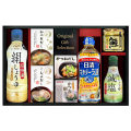 ヤマサの絹しょうゆはうまみをしっかり引き出し、4つの麹(こうじ)が織りなす絶妙ブレンド。「生(なま)しょうゆ」のやわらかさと重ね仕込み製法の「火入れしょうゆ」のコクのある味を合わせ持つ、絶妙なバランスのブレンドしょうゆ、国産のかつお節の豊かなうま味を引き出したかつおだしに、国産昆布の上品な風味を生かしたこんぶだしなど、毎日の食卓へお届けする調味料バラエティギフトです