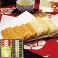 国産米100%にこだわりました。定番のサクッとソフトなサラダ煎餅、程良い甘さのざらめ煎餅、磯の香味広がる青のりしょうゆの詰合せです。