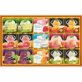 【内容】フルーツゼリー(メロン、ピーチ、グレープ)52g×各2個、シャーベットゼリー(マンゴー、ピンクグレープフルーツ、山形ラフランス)52g×各2個、ヨーグルトムース(ストロベリー、プレーン、マンゴー)52g×各1個