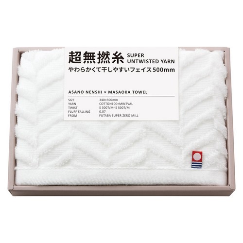 今治 超無撚糸 やわらかくて干しやすいフェイスタオル500mm ホワイト(226579-01)
