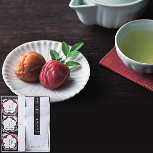 【内容】献上 紀州南高梅100g×1、紫蘇紅 紀州南高梅80g×2、鹿児島県産 かぶせ茶ティーバッグ2g×10、静岡県牧之原産 深むし茶ティーバッグ2g×10、静岡県産 煎茶ティーバッグ2g×10