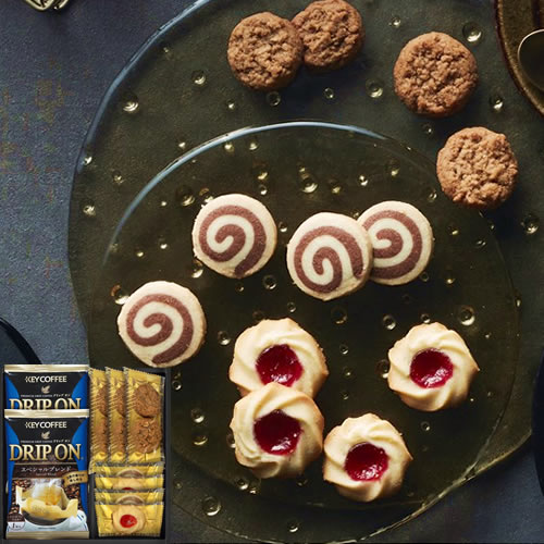 【内容】キーコーヒードリップ8g×2、クッキー(プチラズリン×2、うずまき×2、プチコーヒー2枚入×3)