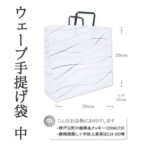 【ウェーブ 手提げ袋 中サイズ】紙袋1枚:26×26×16cm